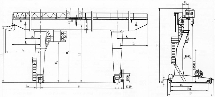 門式起重機(jī)由橋梁、大車運(yùn)行機(jī)構(gòu)、小車、電氣設(shè)備組成。橋架采用箱形焊接結(jié)構(gòu),大車運(yùn)行機(jī)構(gòu)采用分別驅(qū)動。全部機(jī)構(gòu)均在操縱室內(nèi)操縱。門式起重機(jī)導(dǎo)電形式分為電纜和滑觸線兩種,訂貨時任選一種。選用本起重機(jī)時須填寫訂貨規(guī)范表,須注明使用時工作環(huán)境的*低溫度和*高溫度以及電源等。地鐵施工中吊管片用的較多,