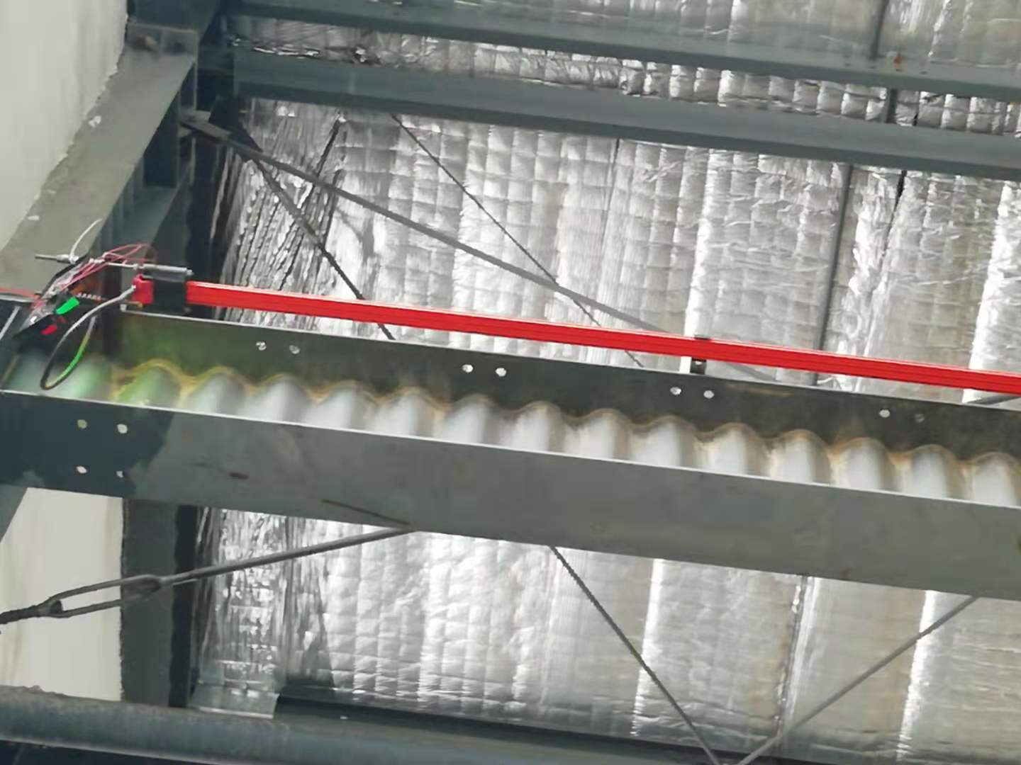 上圖中順著軌道方向扁紅色的長長的是安全無接縫滑觸線,滑觸線通過鐵的挑線架是固定在承重梁上,滑觸線是固定的,它是供單梁起重機(jī)的傳輸供電用,有一個(gè)集電器滑刀沿著滑觸線隨起重機(jī)移動(dòng)傳輸380伏的電,此電供給到起重機(jī)上的DK電氣箱。假如單梁起重機(jī)運(yùn)行100米,無接縫滑觸線的長度就是100米。此滑觸線沒有接頭所以稱無接縫滑觸線,比較安全,所以全稱是安全無接縫滑觸線。